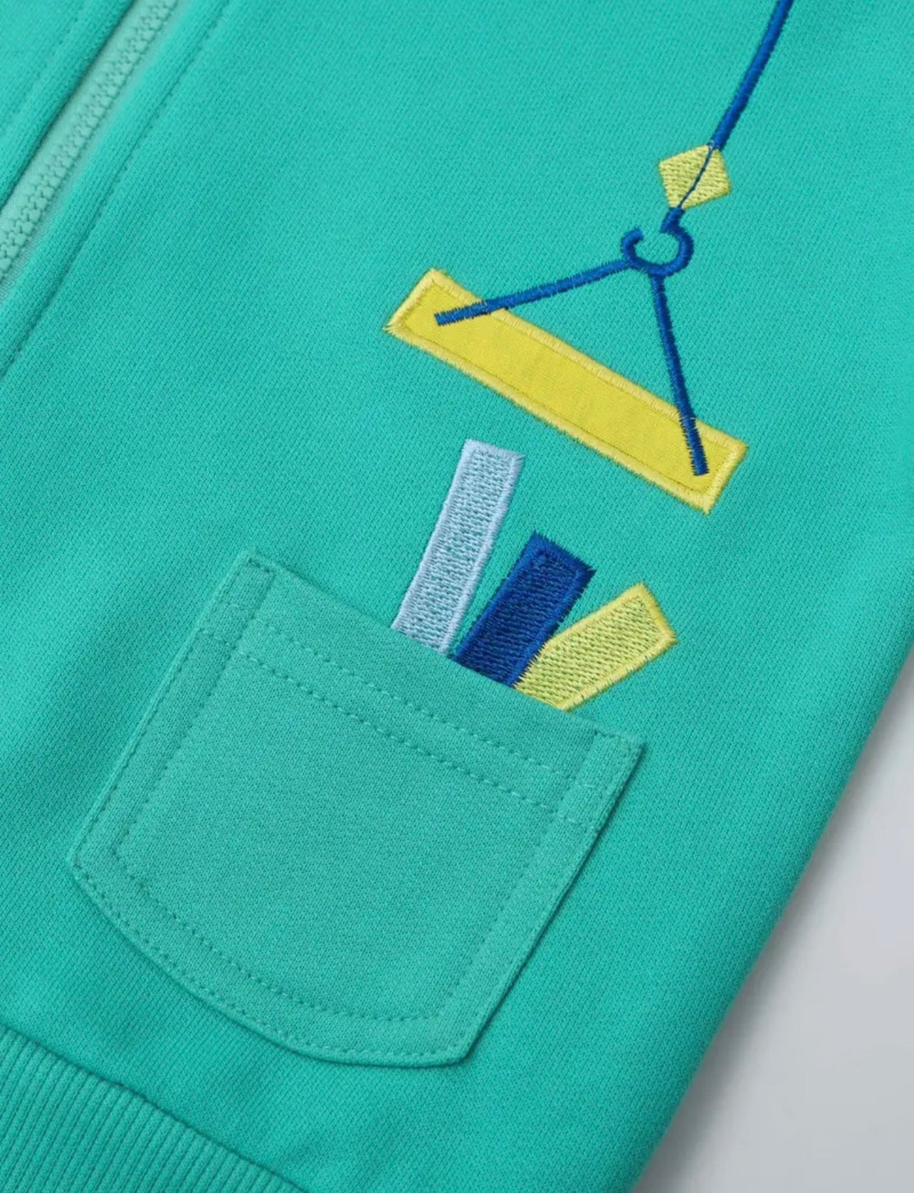 Mikina je vyrobena z měkké a příjemné bavlny, která je šetrná k dětské pokožce a vhodná pro každodenní nošení. Zapínání na zip usnadňuje oblékání a kapuce s originální podšívkou se stavebními motivy dodává mikině stylový detail.