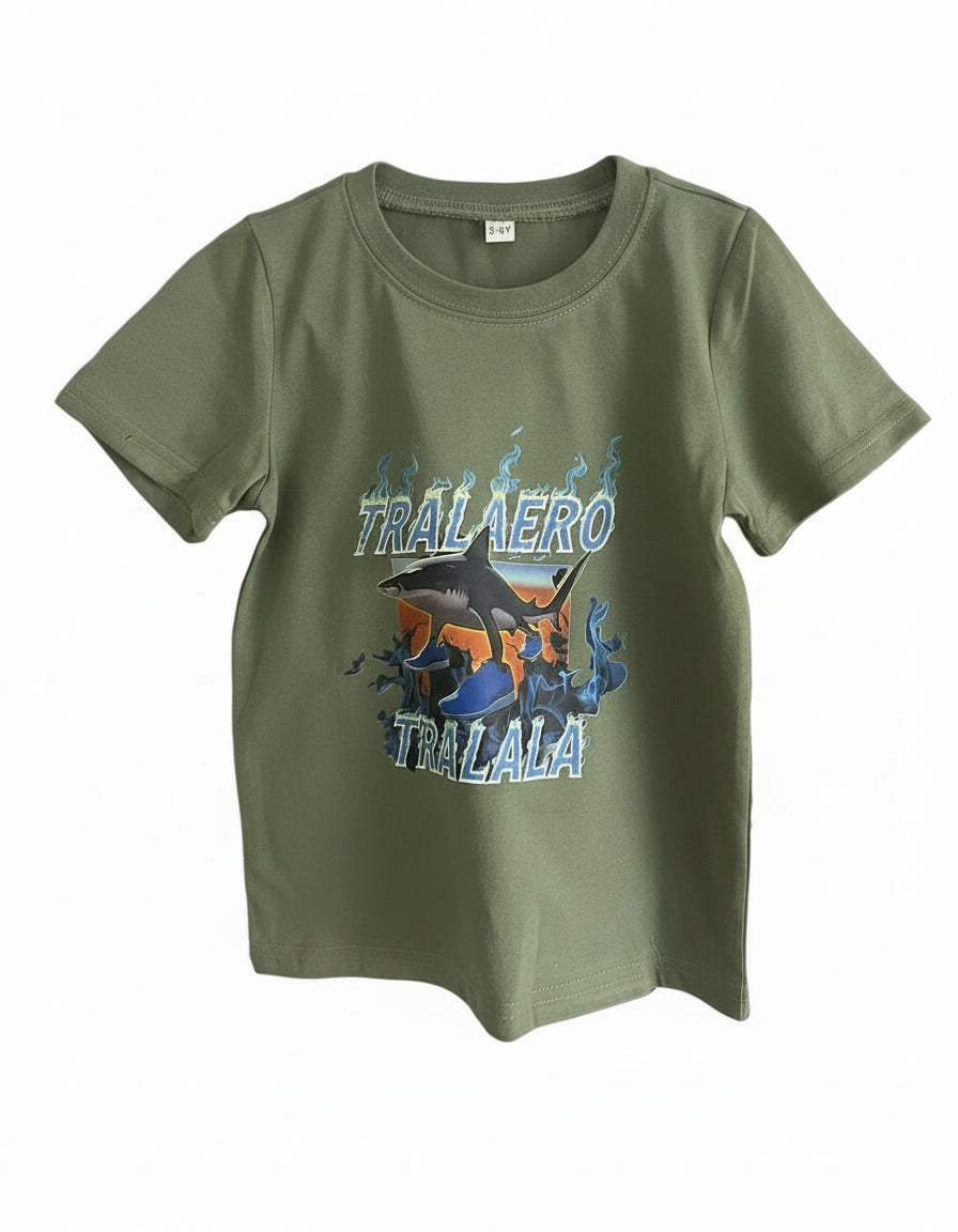 Dětské tričko TRALALERO TRALALA – žralok zelené