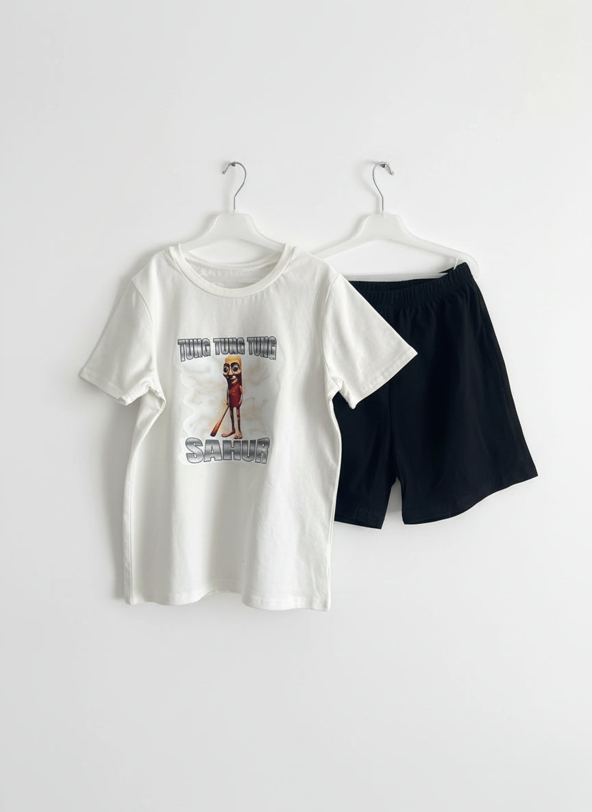 Pyžamo krátký rukáv Tung Tung Sahur 2 bílé
