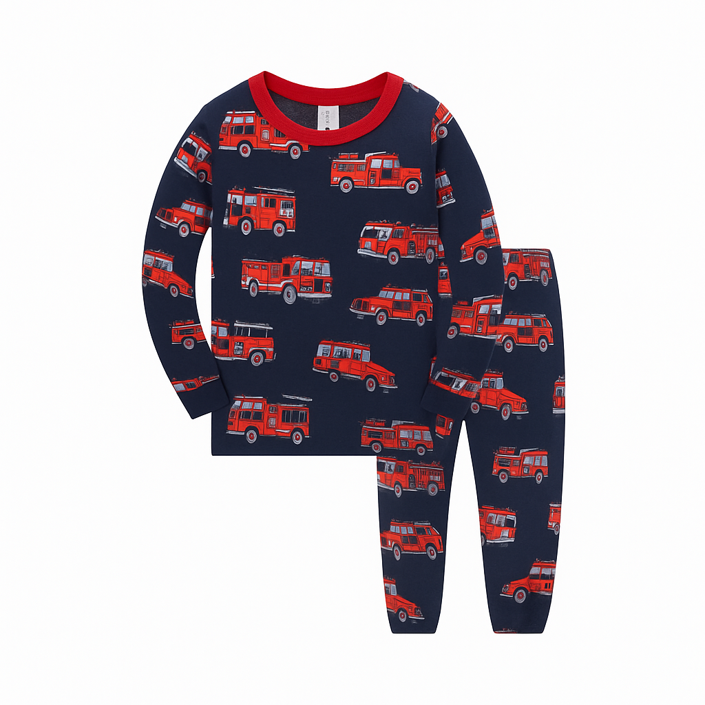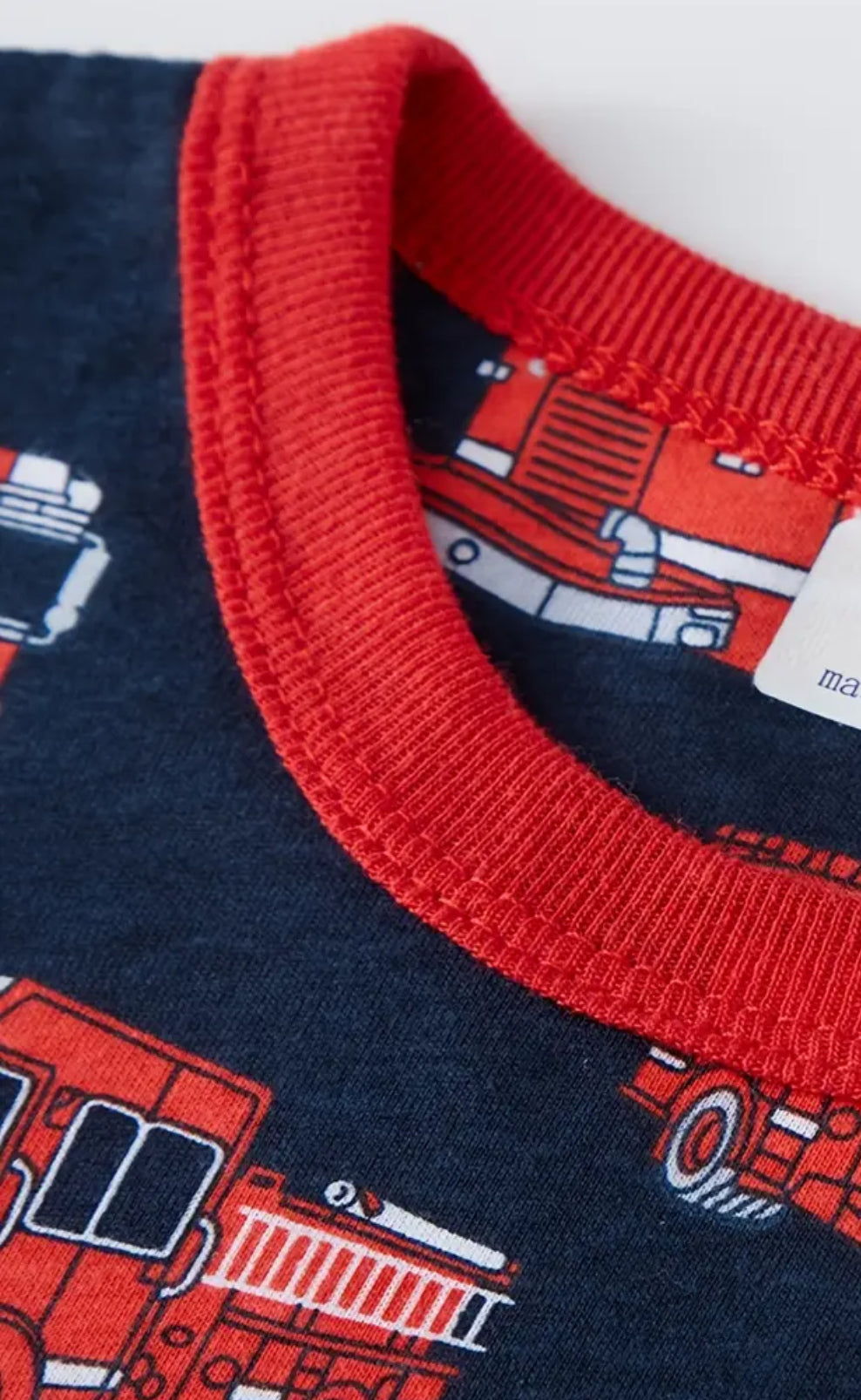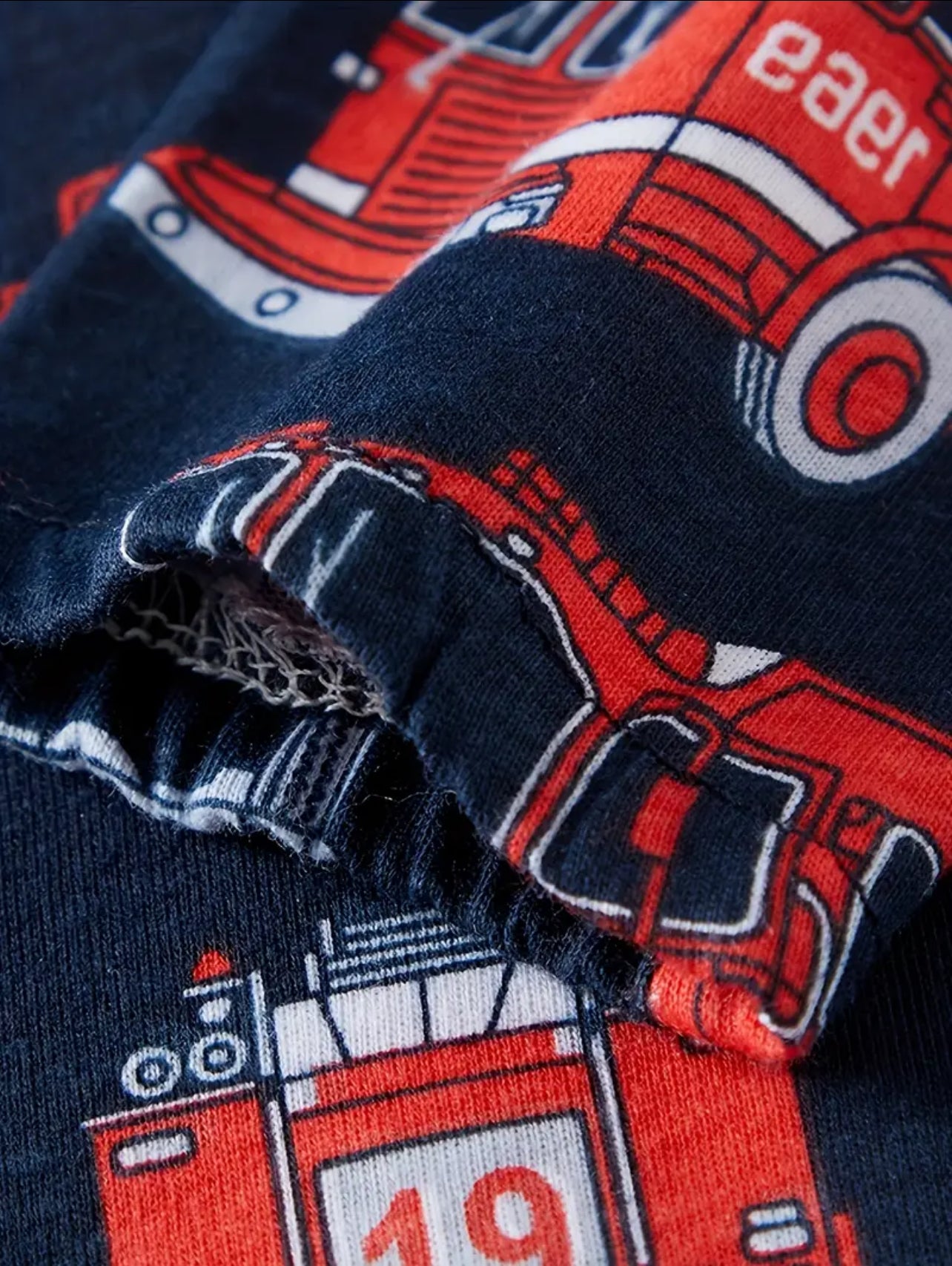 Pohodlné dětské pyžamko s motivem hasičských aut, vyrobené z jemné a prodyšné 100% bavlny. Ideální na spaní i domácí pohodičku. Kvalitní materiál šetrný k pokožce a veselý design pro všechny malé hasiče.