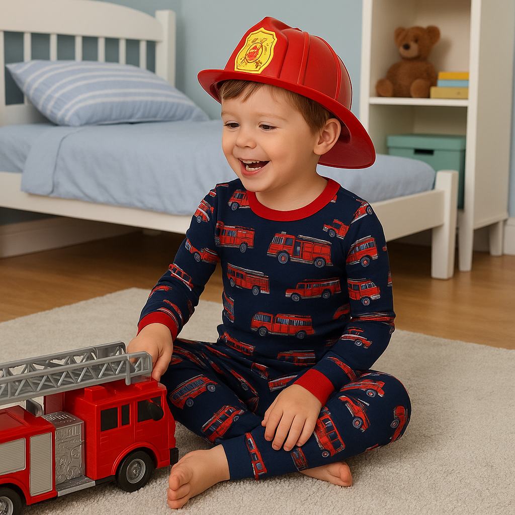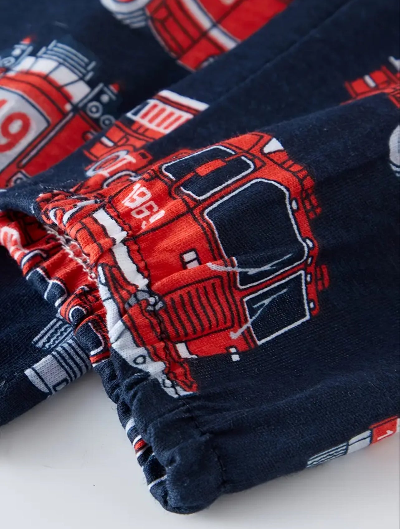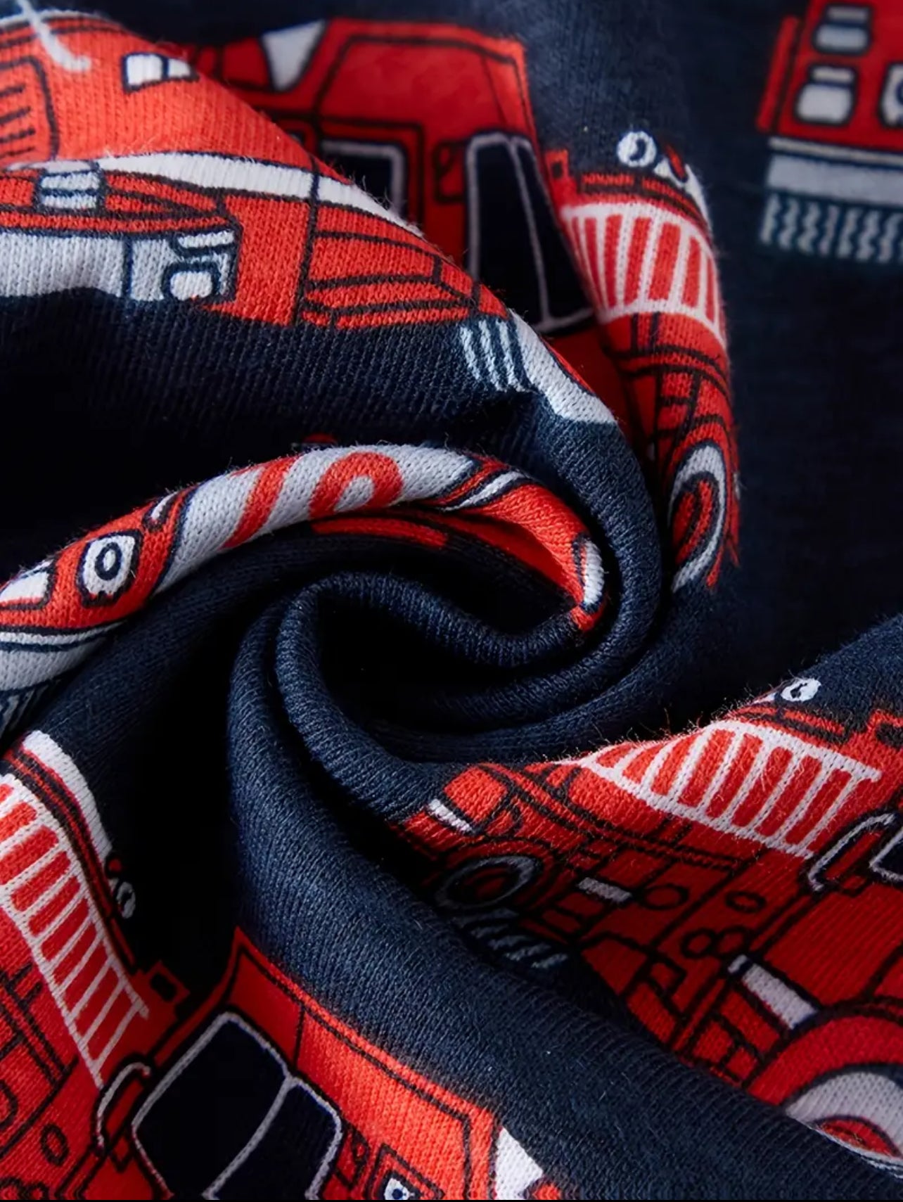 Pohodlné dětské pyžamko s motivem hasičských aut, vyrobené z jemné a prodyšné 100% bavlny. Ideální na spaní i domácí pohodičku. Kvalitní materiál šetrný k pokožce a veselý design pro všechny malé hasiče.