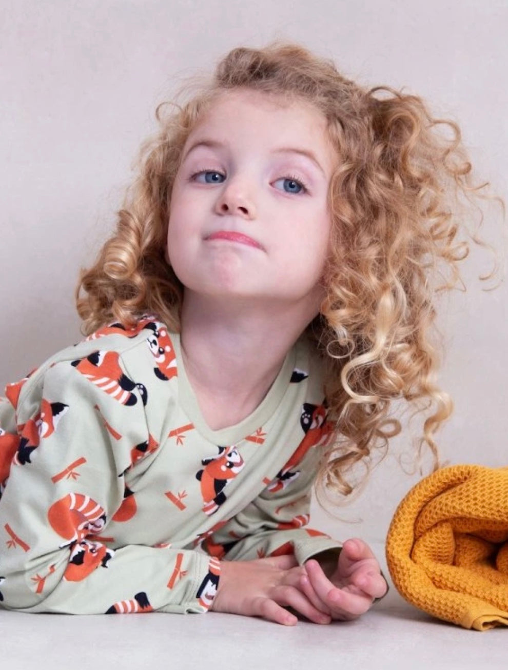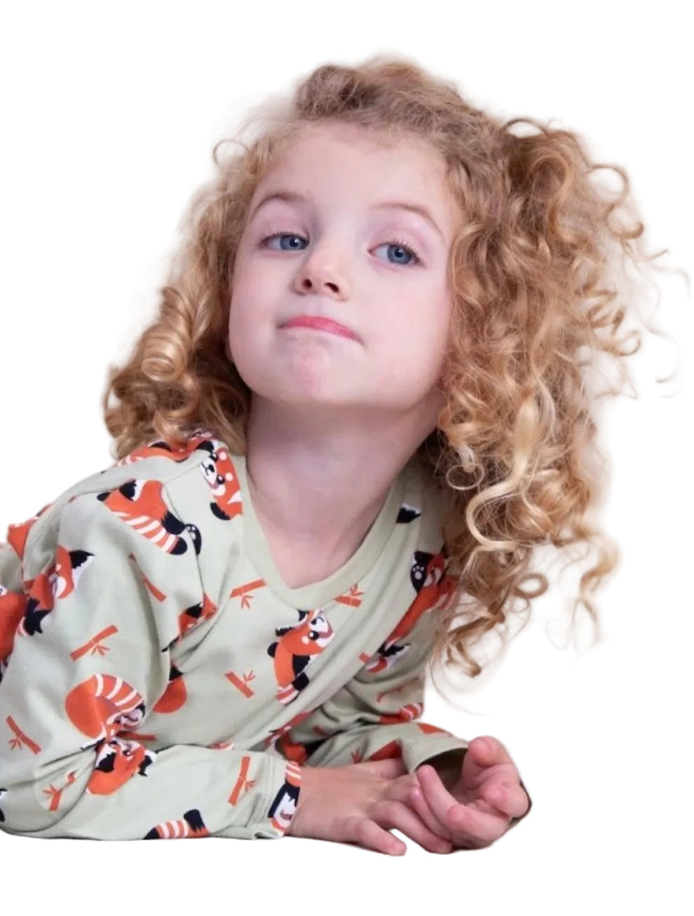 Pyžamo je ušité z kvalitního bavlněného úpletu s příměsí elastanu, který je měkký, prodyšný a příjemný na dotek. Materiál se krásně přizpůsobí pohybu dítěte a nikde netlačí – ideální pro spaní i domácí pohodu.