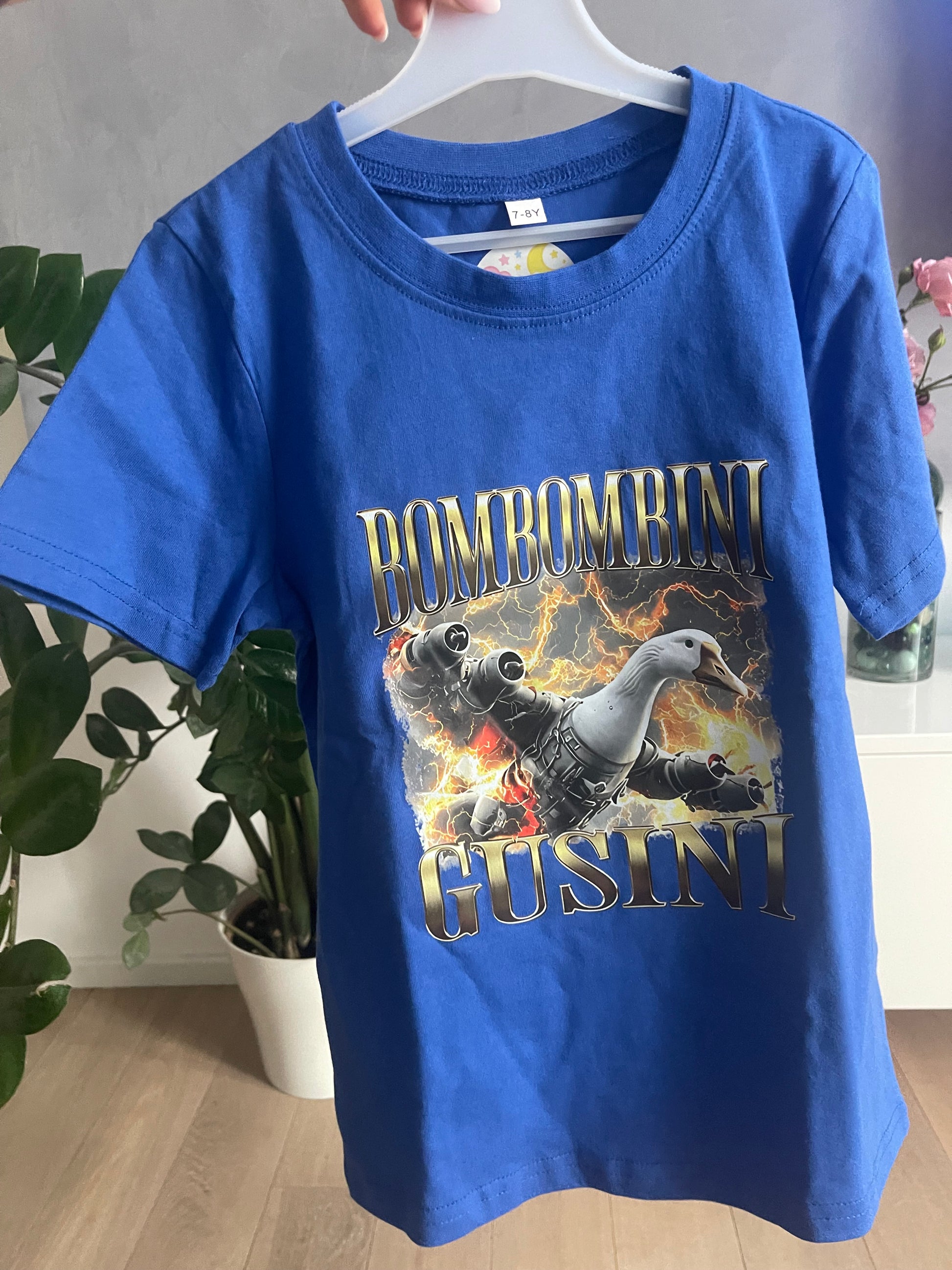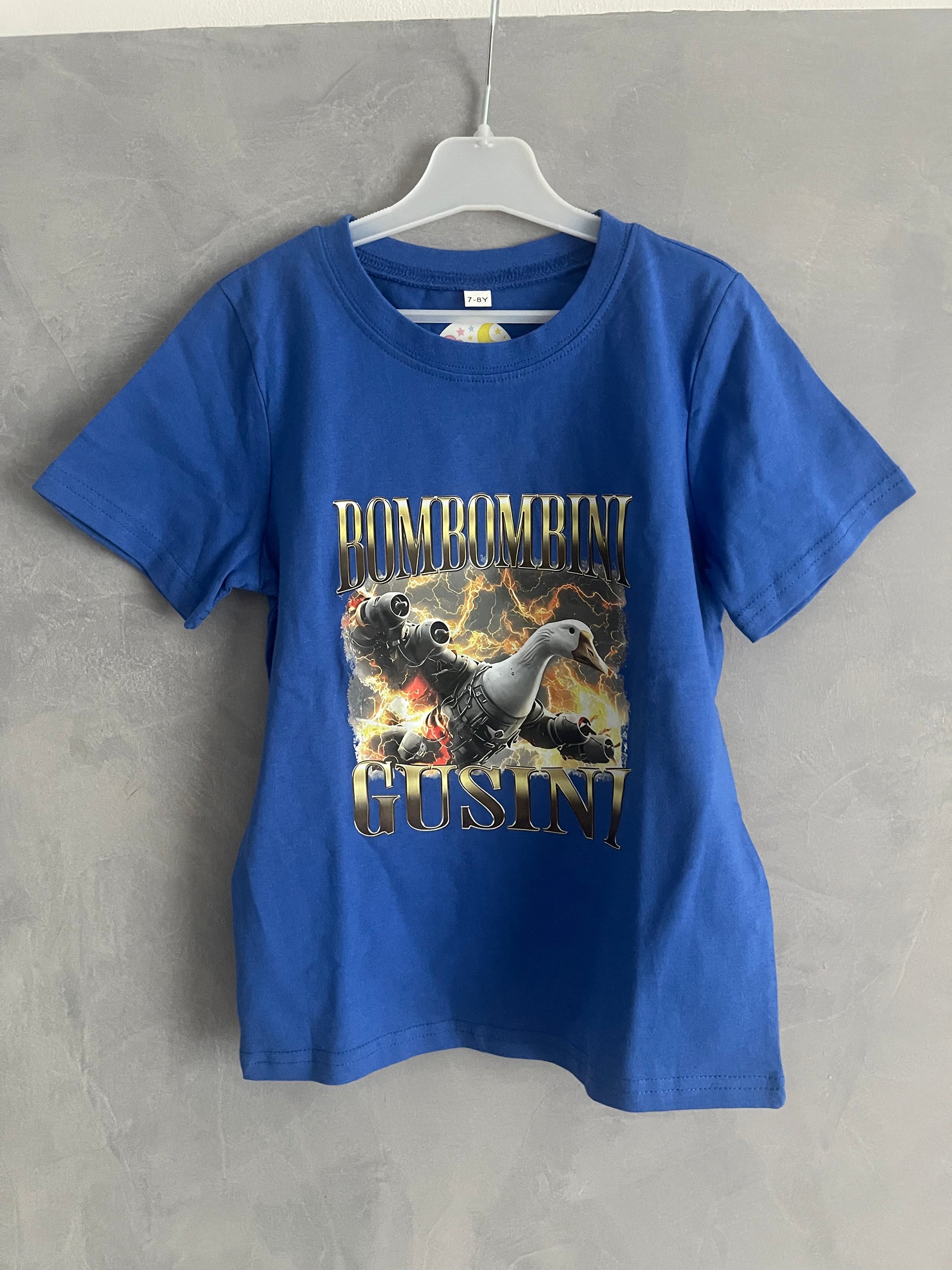 Připravte malého snílka na pořádnou dávku humoru a energie! Naše modré tričko Bombombini Gusini je inspirované oblíbeným italským BrainRotem a přináší motiv, který děti prostě milují – akční husa, která má šmrnc, vtip a pořádnou kouzelnou sílu.