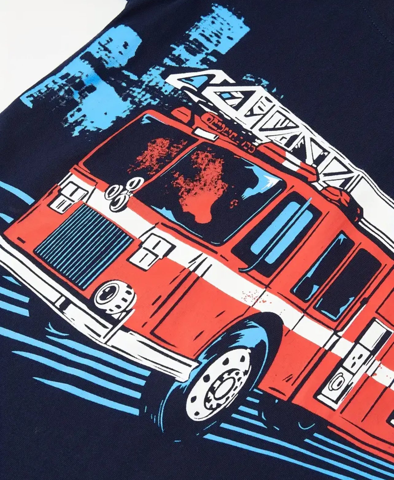 Stylové chlapecké tričko s výrazným motivem hasičského auta potěší všechny malé nadšence záchranářů. Tmavě modrá barva je praktická, moderní a skvěle se kombinuje s džínami i kraťasy. Díky kvalitnímu potisku v červených a modrých tónech působí tričko výrazně a dynamicky – jako opravdová akce!