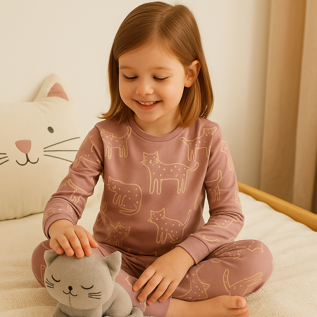 ✨ Pyžamko, ve kterém se děti přenesou do snové říše plné kočičích dobrodružství.