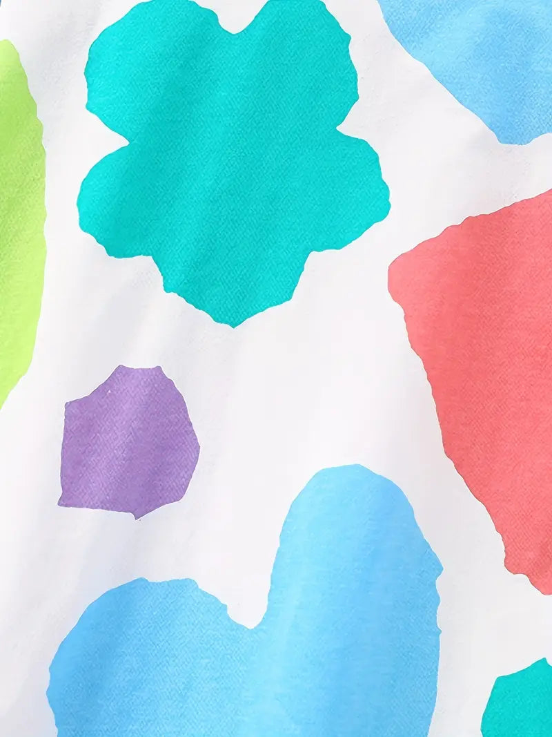 Veselé dvoudílné pyžamko z 100% jemné bavlny, ve kterém se každý večer promění v barevnou pohádku. Bílý základ zdobí hravá srdíčka a tvary v pestrých odstínech modré, fialové, růžové, zelené i tyrkysové.