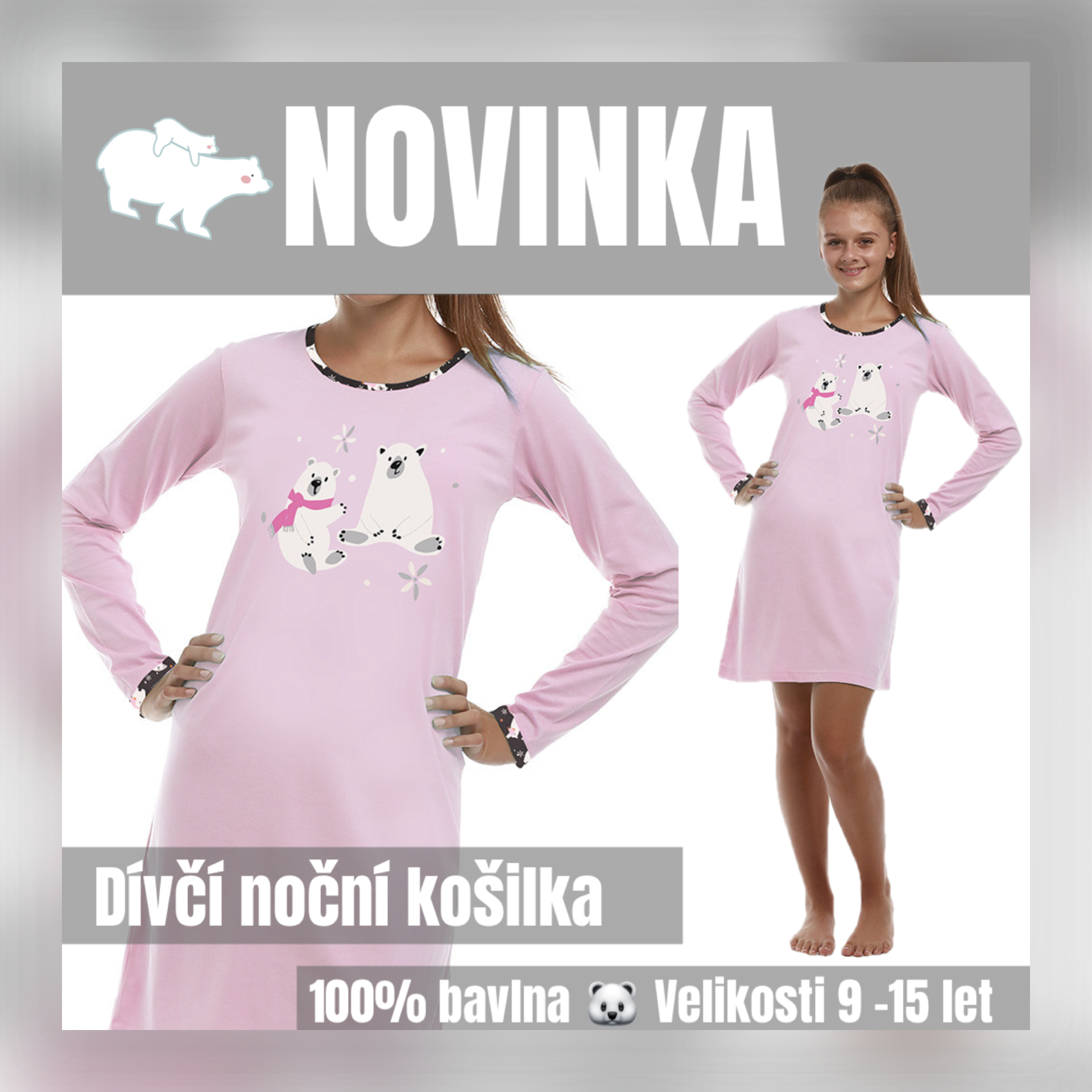 🐻❄️ Dívčí noční košilka s ledními medvídky – 100% bavlna 💗✨