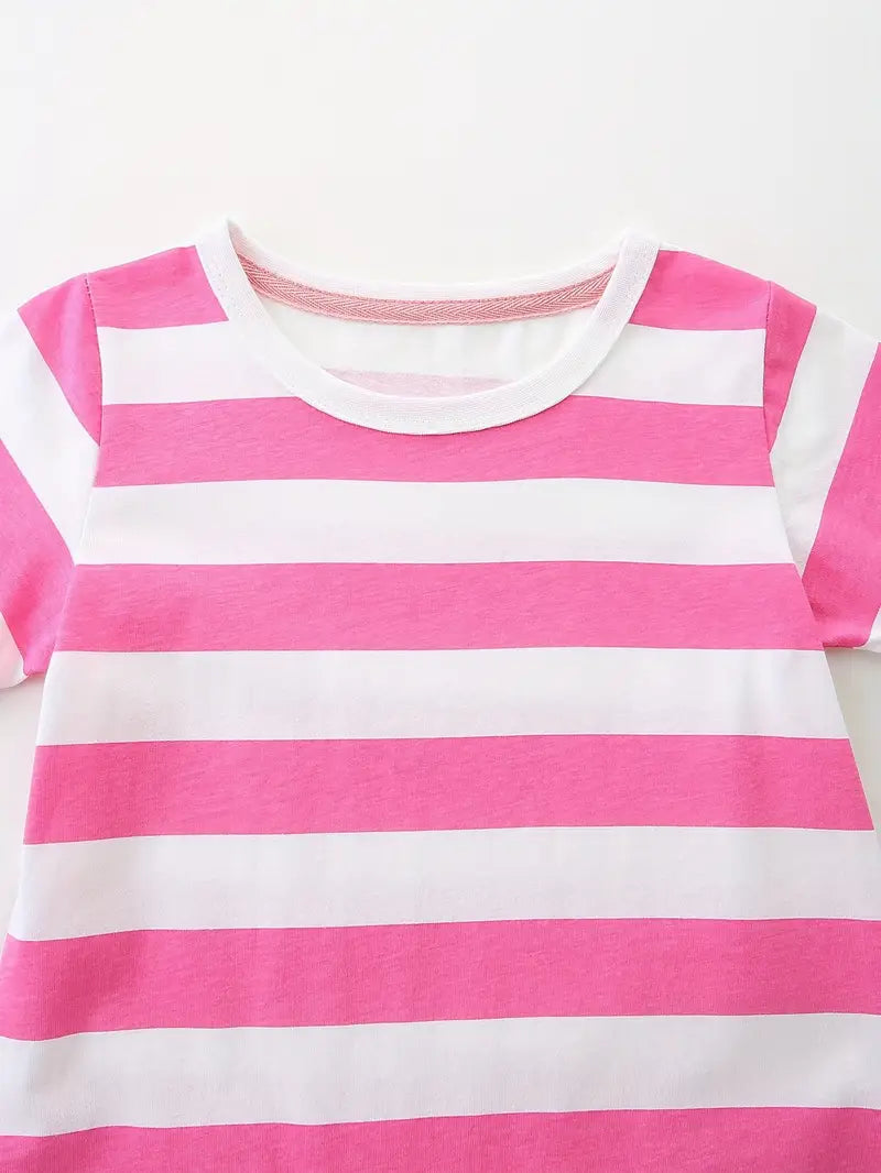 ✨ Růžovo-bílý proužek, dvě usměvavé včelky a večerní pohodlí jako z pohádky.