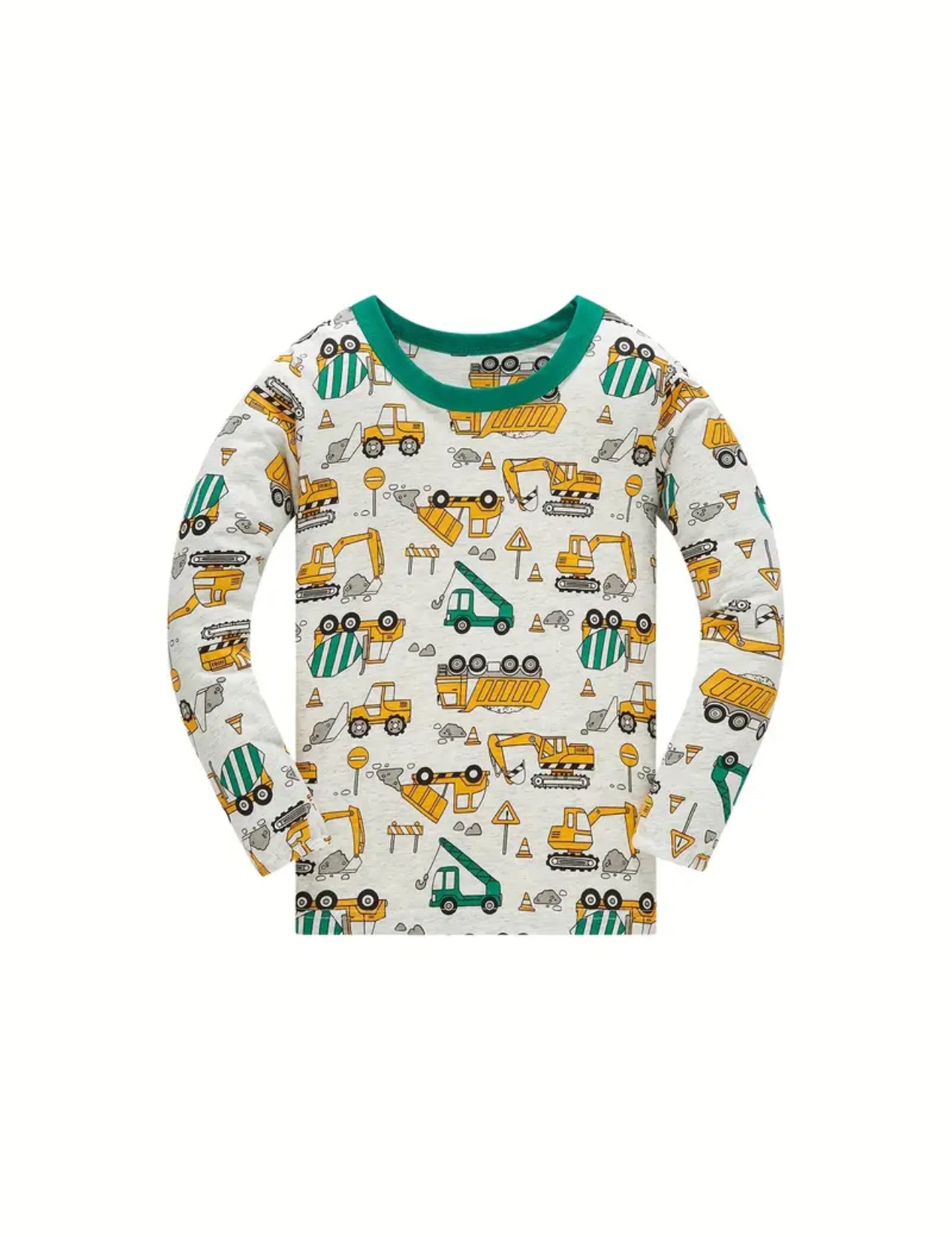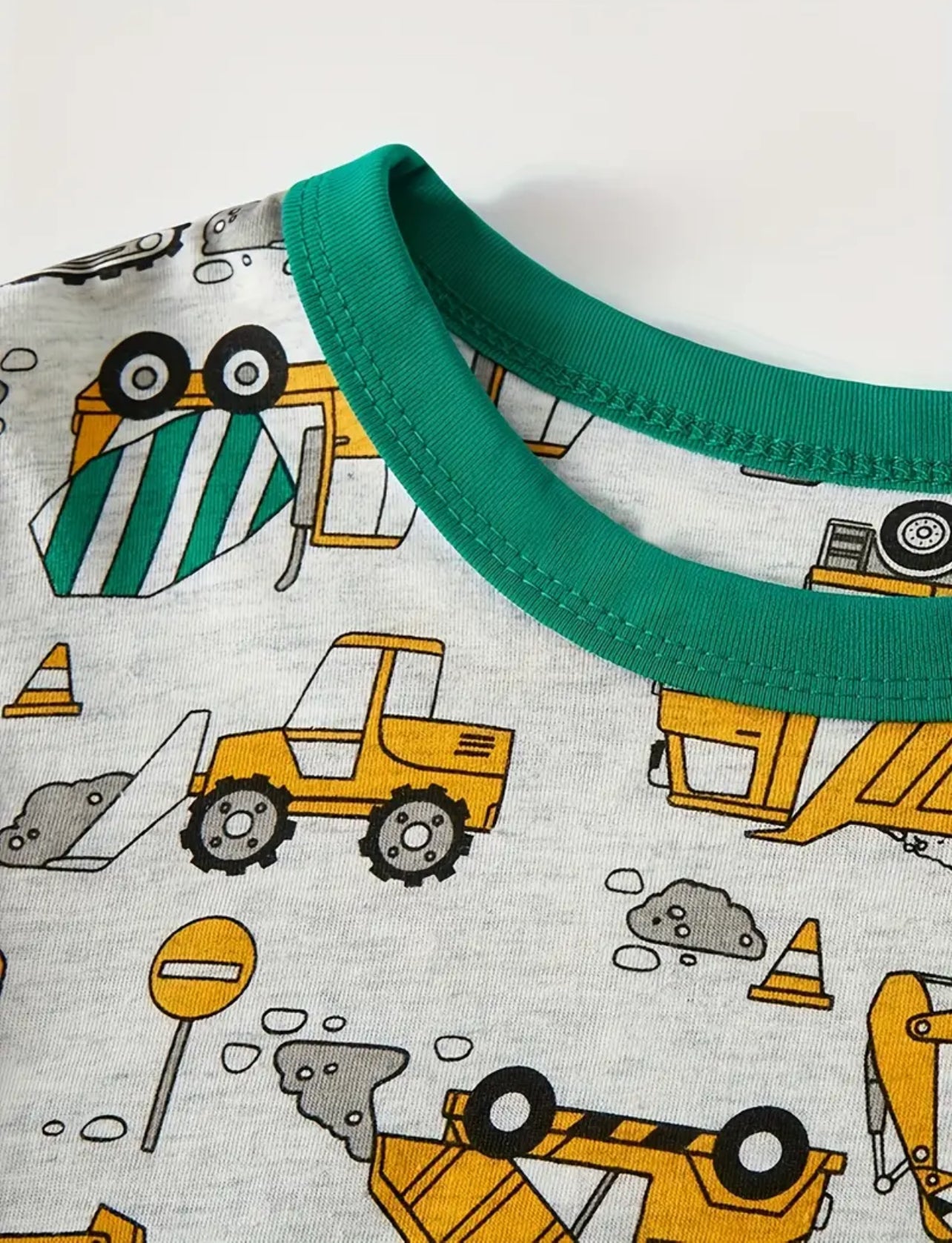 🏗️ Dětské pyžamo se stavebními stroji – 100% bavlna 🏗️