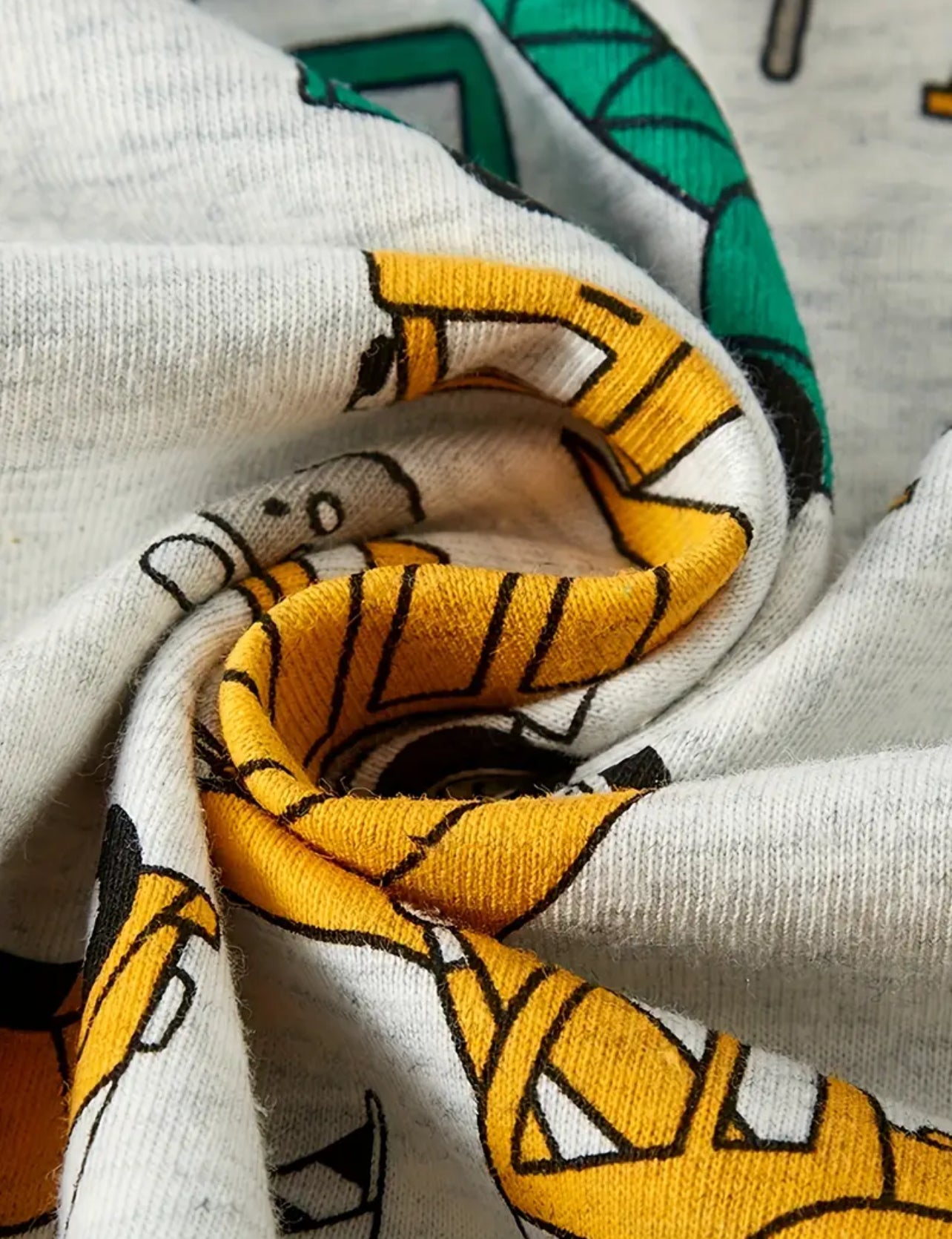 Pro všechny malé snílky, kteří milují bagry, jeřáby a buldozery! 🚧 Toto veselé pyžamko se stavebním motivem přinese do večera radost a sny plné dobrodružství na stavbě.