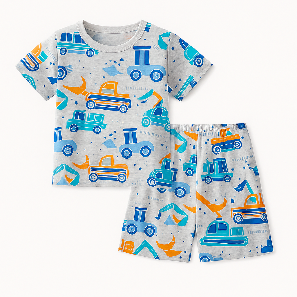 🚜🛠️ Letní pyžamko „Stavba snů“ – pro všechny malé bagristy 🛠️🚜