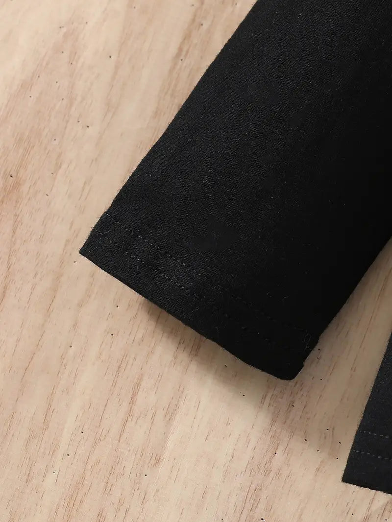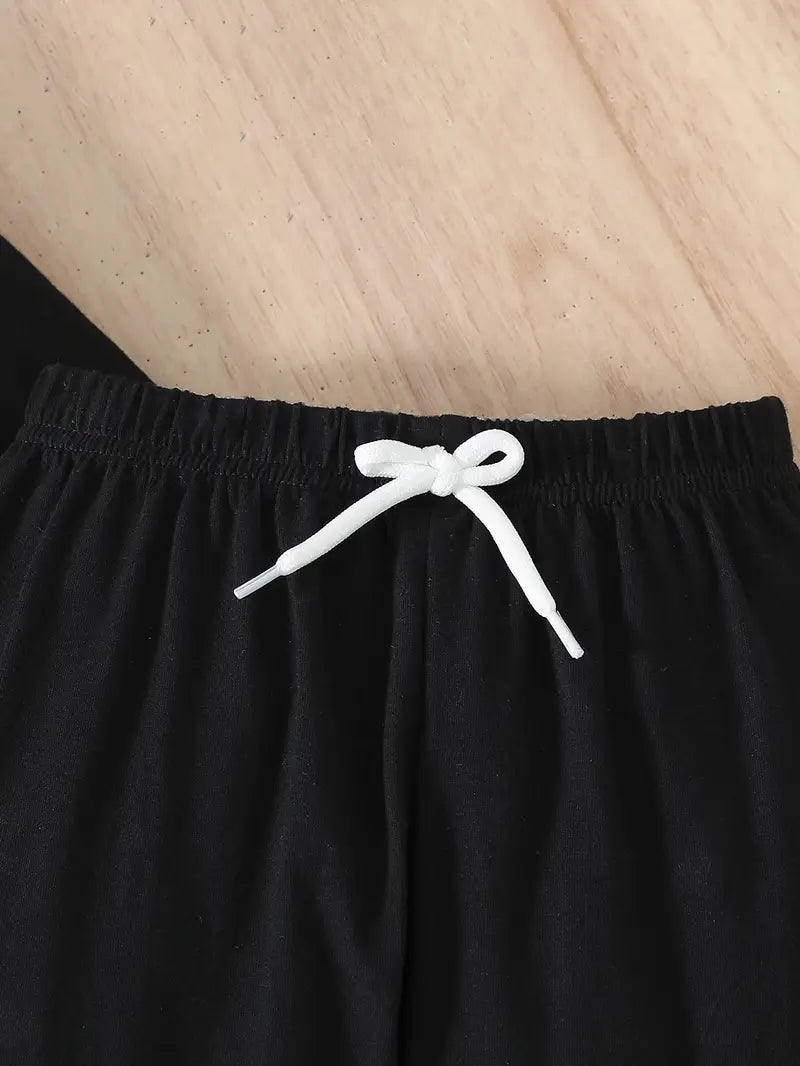 Stylový a pohodlný komplet pro všechny malé snílky, kteří milují hravost i pohodlí. Tento černo-bílý set z příjemné 100% bavlny se skládá z trička s krátkým rukávem a dlouhých kalhot s pružným pasem.