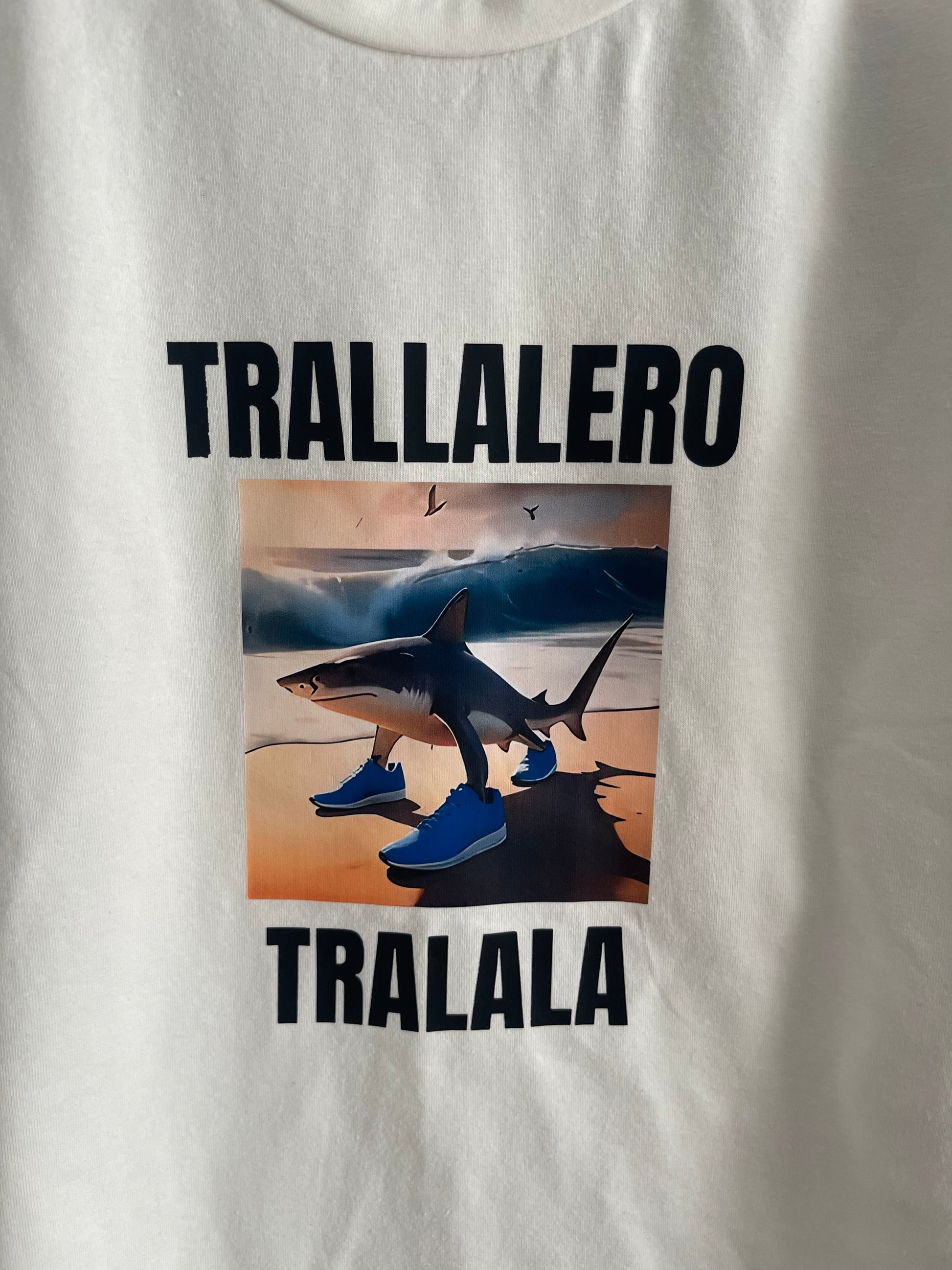 🤍 bílé tričko s motivem Strelalero Trelalà – trend italského BrainRotu
