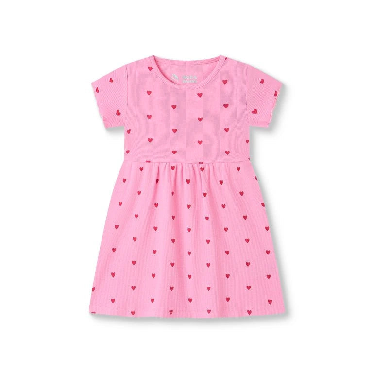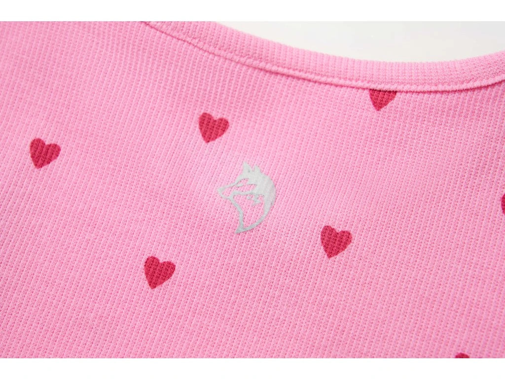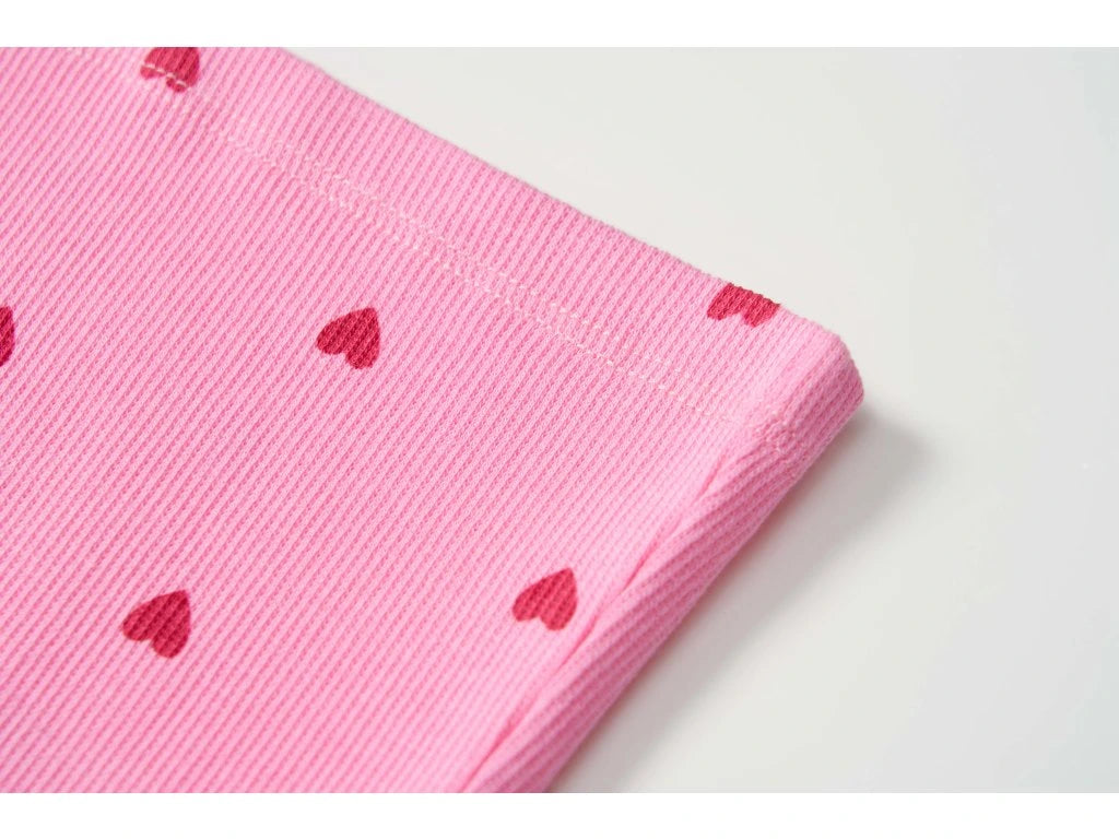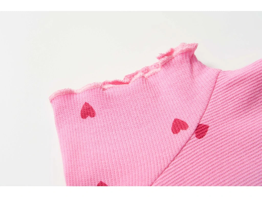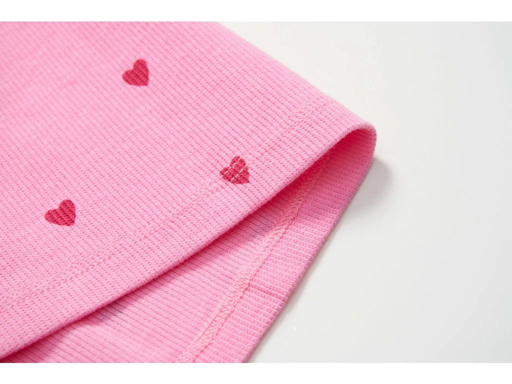 Tyto růžové šaty s drobnými srdíčky jsou jako stvořené pro malé snílky, které milují pohodlí, něhu a radost z pohybu. Jemný vzor srdíček dodává šatům hravý a romantický nádech – ideální na Valentýna, ale i na běžné dny plné smíchu.