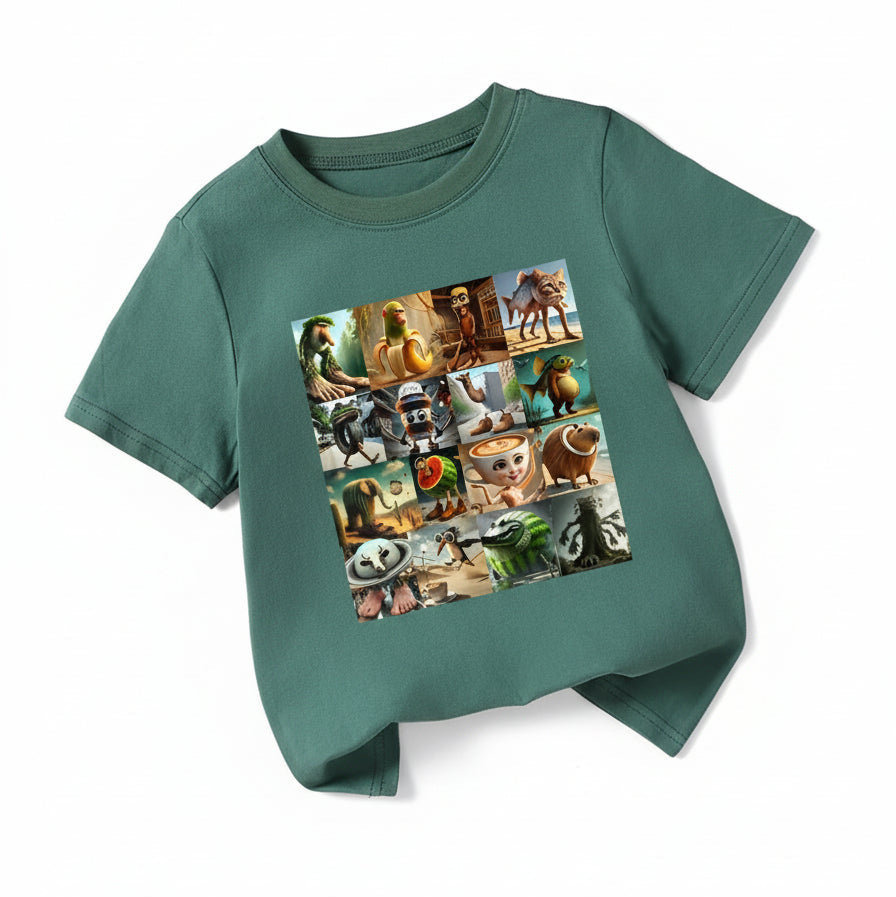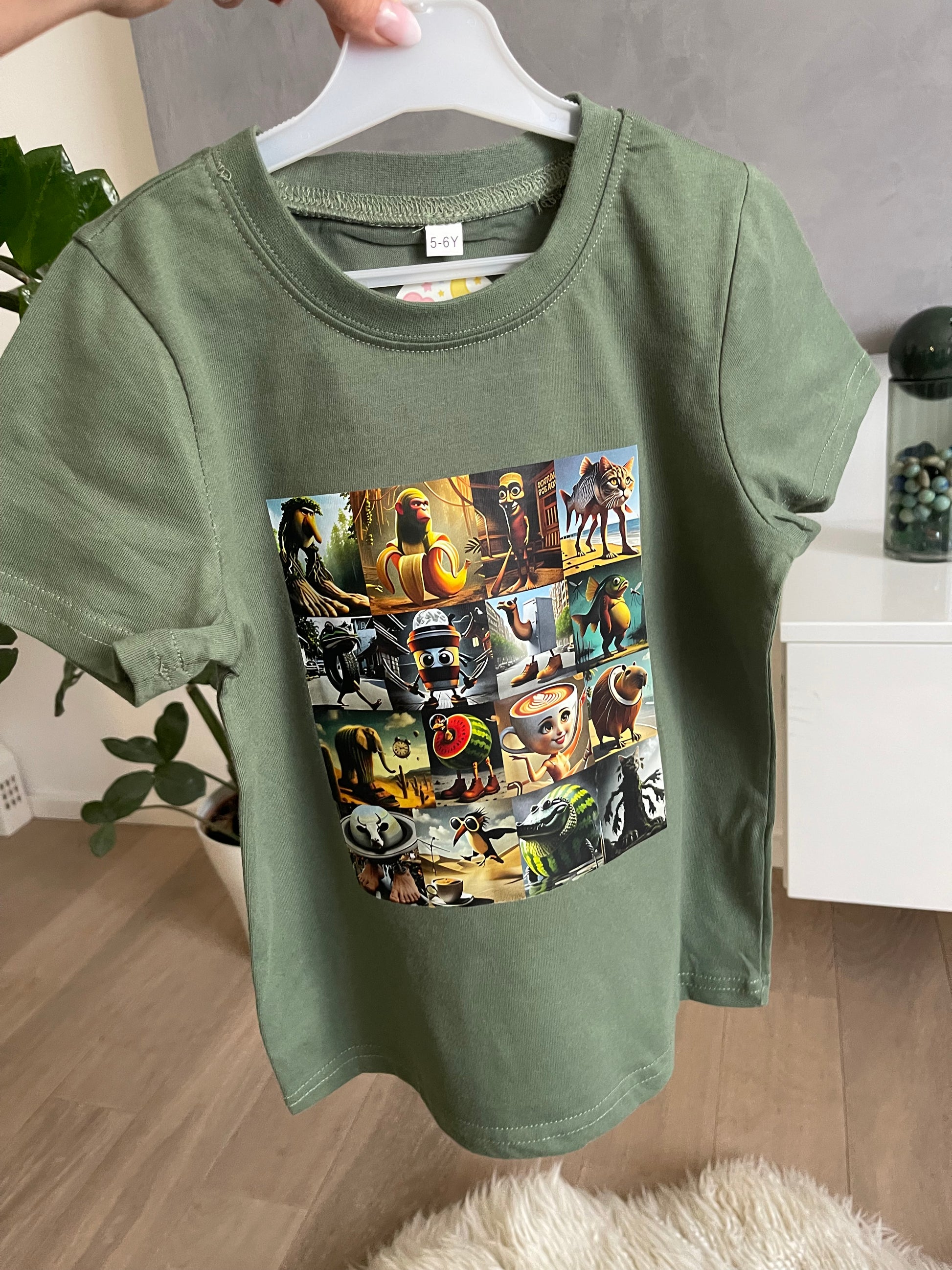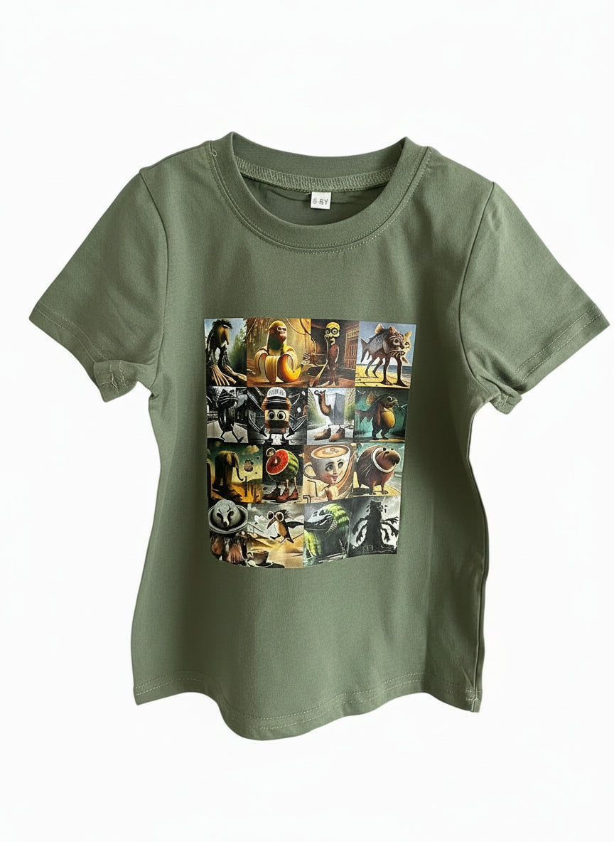 Objevte jedinečné dětské tričko v krásné khaki barvě s originálním potiskem inspirovaným italským BrainRotem. Každý obrázek na tričku vypráví vlastní příběh – plný fantazie, humoru a dobrodružství. Perfektní pro malé rošťáky, kteří milují výrazné motivy a chtějí být originální.